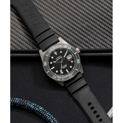 Cette montre Timex a un boîtier Titane 40 mm en diamètre et est équipée d'un bracelet caoutchouc. Le boîtier contient un mouvement Timex et la montre est dotée d'un cristal Saphire..