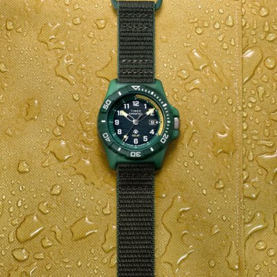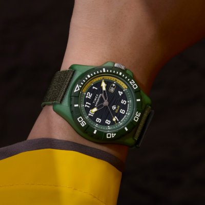 Cette montre Timex a un boîtier Marée plastique océanique 46 mm en diamètre et est équipée d'un bracelet Marée plastique océanique. Le boîtier contient un mouvement Timex et la montre est dotée d'un cristal Minéral..