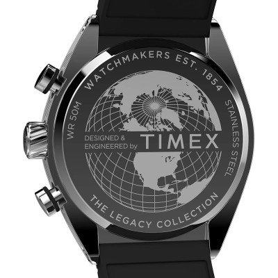 Cette montre Timex a un boîtier Inox 42 mm en diamètre et est équipée d'un bracelet caoutchouc. Le boîtier contient un mouvement Timex et la montre est dotée d'un cristal Minéral..