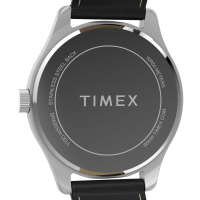 Cette montre Timex a un boîtier Alliage de Métal 42 mm en diamètre et est équipée d'un bracelet cuir. Le boîtier contient un mouvement Timex et la montre est dotée d'un cristal Minéral..