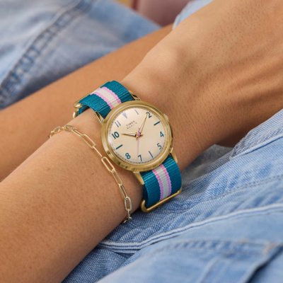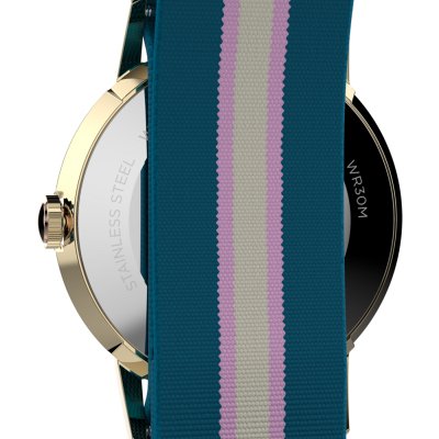 Cette montre Timex a un boîtier Inox 34 mm en diamètre et est équipée d'un bracelet Textile. Le boîtier contient un mouvement Timex et la montre est dotée d'un cristal Acrylique..