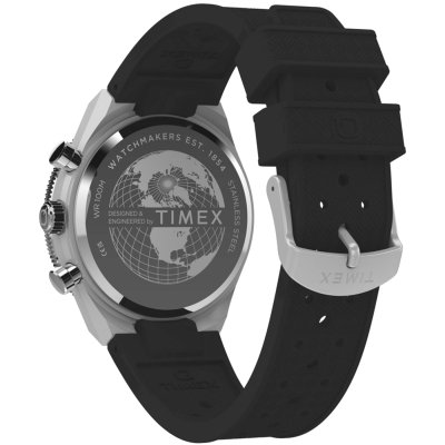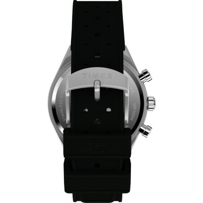 Cette montre Timex a un boîtier Inox 40 mm en diamètre et est équipée d'un bracelet caoutchouc. Le boîtier contient un mouvement Timex et la montre est dotée d'un cristal Minéral..
