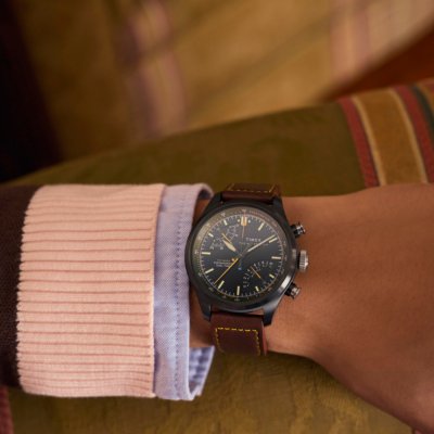 Cette montre Timex a un boîtier Inox 43 mm en diamètre et est équipée d'un bracelet cuir. Le boîtier contient un mouvement Timex et la montre est dotée d'un cristal Minéral..