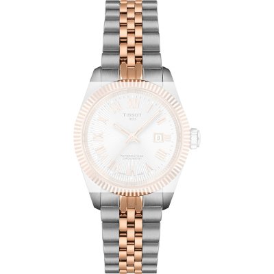 Ce bracelet de montre Tissotest fait de acier inoxydable et est attaché à la montre au moyen de Épingles à ressort. Le bracelet a une taille de 16 mm et se ferme au moyen d'un boucle papillon avec boutons poussoirs. Le bracelet est doté d'une monture droite, ce qui signifie qu'il convient à toutes les montres de la Tissot dotées d'une monture droite..