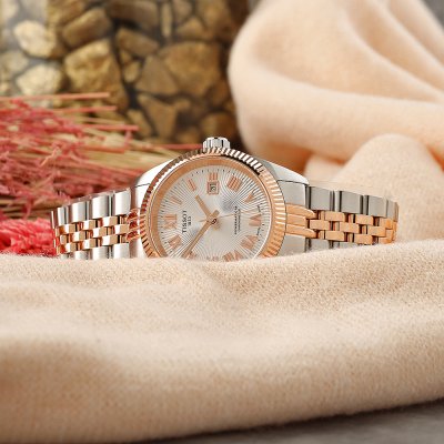 Cette montre Tissot a un boîtier Inox 30 mm en diamètre et est équipée d'un bracelet Inox. Le boîtier contient un mouvement ETA et la montre est dotée d'un cristal Saphire double antireflet..