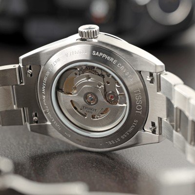 Cette montre Tissot a un boîtier Inox 40 mm en diamètre et est équipée d'un bracelet Inox. Le boîtier contient un mouvement ETA et la montre est dotée d'un cristal Saphire..