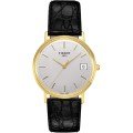 Cette montre Tissot a un boîtier Or 18 carats 33.7 mm en diamètre et est équipée d'un bracelet cuir. Le boîtier contient un mouvement ETA et la montre est dotée d'un cristal Hesalite..