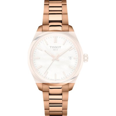 Ce bracelet de montre Tissotest fait de acier inoxydable et est attaché à la montre au moyen de Épingles à ressort à dégagement rapide. Le bracelet a une taille de 16 mm et se ferme au moyen d'un boucle papillon avec boutons poussoirs. Le bracelet n'a pas de support droit, ce qui signifie que ce bracelet convient uniquement aux montres énumérées ci-dessous.