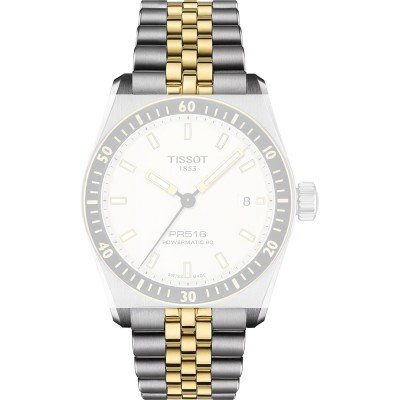 Ce bracelet de montre Tissotest fait de acier inoxydable et est attaché à la montre au moyen de Épingles à ressort à dégagement rapide. Le bracelet a une taille de 20 mm et se ferme au moyen d'un boucle papillon avec boutons poussoirs. Le bracelet n'a pas de support droit, ce qui signifie que ce bracelet convient uniquement aux montres énumérées ci-dessous.