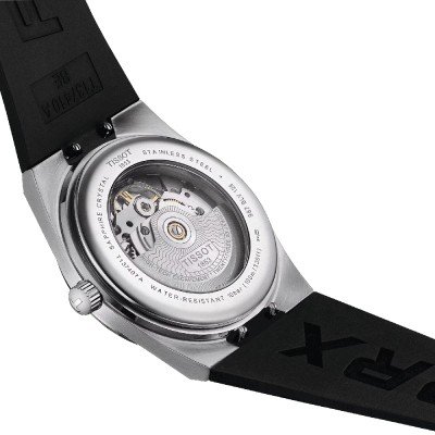 Cette montre Tissot a un boîtier Inox 40 mm en diamètre et est équipée d'un bracelet caoutchouc. Le boîtier contient un mouvement ETA et la montre est dotée d'un cristal Saphir antireflet unique..
