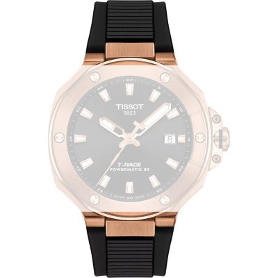 Ce bracelet de montre Tissotest fait de silicone et est attaché à la montre au moyen de vis de selle. Le bracelet a une taille de 22 mm et se ferme au moyen d'un boucle. Le bracelet n'a pas de support droit, ce qui signifie que ce bracelet convient uniquement aux montres énumérées ci-dessous.