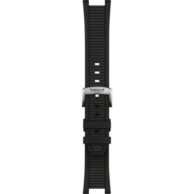Ce bracelet de montre Tissotest fait de silicone et est attaché à la montre au moyen de vis de selle. Le bracelet a une taille de 22 mm et se ferme au moyen d'un boucle. Le bracelet n'a pas de support droit, ce qui signifie que ce bracelet convient uniquement aux montres énumérées ci-dessous.