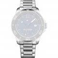 Ce bracelet de montre Tommy Hilfigerest fait de acier inoxydable et est attaché à la montre au moyen de Épingles à ressort. Le bracelet a une taille de 22 mm et se ferme au moyen d'un boucle déployante avec boutons poussoirs. Le bracelet n'a pas de support droit, ce qui signifie que ce bracelet convient uniquement aux montres énumérées ci-dessous.