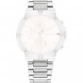 Ce bracelet de montre Tommy Hilfigerest fait de acier inoxydable et est attaché à la montre au moyen de goupilles en acier. Le bracelet a une taille de 20 mm et se ferme au moyen d'un boucle déployante avec boutons poussoirs. Le bracelet n'a pas de support droit, ce qui signifie que ce bracelet convient uniquement aux montres énumérées ci-dessous.