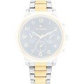 Ce bracelet de montre Tommy Hilfigerest fait de acier inoxydable et est attaché à la montre au moyen de Épingles à ressort. Le bracelet a une taille de 18 mm et se ferme au moyen d'un boucle déployante avec boutons poussoirs. Le bracelet n'a pas de support droit, ce qui signifie que ce bracelet convient uniquement aux montres énumérées ci-dessous.