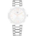 Ce bracelet de montre Tommy Hilfigerest fait de acier inoxydable et est attaché à la montre au moyen de goupilles en acier. Le bracelet a une taille de 18 mm et se ferme au moyen d'un boucle déployante avec boutons poussoirs. Le bracelet n'a pas de support droit, ce qui signifie que ce bracelet convient uniquement aux montres énumérées ci-dessous.