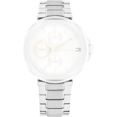 Ce bracelet de montre Tommy Hilfigerest fait de acier inoxydable et est attaché à la montre au moyen de goupilles en acier. Le bracelet a une taille de 19 mm et se ferme au moyen d'un boucle déployante avec boutons poussoirs. Le bracelet n'a pas de support droit, ce qui signifie que ce bracelet convient uniquement aux montres énumérées ci-dessous.