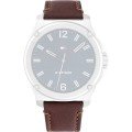 Ce bracelet de montre Tommy Hilfigerest fait de cuir et est attaché à la montre au moyen de Épingles à ressort. Le bracelet a une taille de 22 mm et se ferme au moyen d'un boucle. Le bracelet est doté d'une monture droite, ce qui signifie qu'il convient à toutes les montres de la Tommy Hilfiger dotées d'une monture droite..