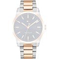 Ce bracelet de montre Tommy Hilfigerest fait de acier inoxydable et est attaché à la montre au moyen de goupilles en acier. Le bracelet a une taille de 22 mm et se ferme au moyen d'un boucle déployante avec boutons poussoirs. Le bracelet n'a pas de support droit, ce qui signifie que ce bracelet convient uniquement aux montres énumérées ci-dessous.