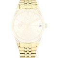 Ce bracelet de montre Tommy Hilfigerest fait de acier inoxydable et est attaché à la montre au moyen de Épingles à ressort. Le bracelet a une taille de 18 mm et se ferme au moyen d'un boucle déployante avec boutons poussoirs. Le bracelet n'a pas de support droit, ce qui signifie que ce bracelet convient uniquement aux montres énumérées ci-dessous.