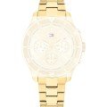 Ce bracelet de montre Tommy Hilfigerest fait de acier inoxydable et est attaché à la montre au moyen de Épingles à ressort. Le bracelet a une taille de 18 mm et se ferme au moyen d'un boucle déployante avec boutons poussoirs. Le bracelet n'a pas de support droit, ce qui signifie que ce bracelet convient uniquement aux montres énumérées ci-dessous.