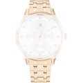 Ce bracelet de montre Tommy Hilfigerest fait de acier inoxydable et est attaché à la montre au moyen de Épingles à ressort. Le bracelet a une taille de 18 mm et se ferme au moyen d'un boucle déployante avec boutons poussoirs. Le bracelet n'a pas de support droit, ce qui signifie que ce bracelet convient uniquement aux montres énumérées ci-dessous.