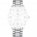 Ce bracelet de montre Tommy Hilfigerest fait de acier inoxydable et est attaché à la montre au moyen de goupilles en acier. Le bracelet a une taille de 20 mm et se ferme au moyen d'un boucle déployante avec boutons poussoirs. Le bracelet n'a pas de support droit, ce qui signifie que ce bracelet convient uniquement aux montres énumérées ci-dessous.
