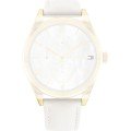 Ce bracelet de montre Tommy Hilfigerest fait de cuir et est attaché à la montre au moyen de Épingles à ressort. Le bracelet a une taille de 18 mm et se ferme au moyen d'un boucle. Le bracelet est doté d'une monture droite, ce qui signifie qu'il convient à toutes les montres de la Tommy Hilfiger dotées d'une monture droite..