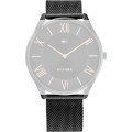 Ce bracelet de montre Tommy Hilfigerest fait de acier inoxydable et est attaché à la montre au moyen de Épingles à ressort. Le bracelet a une taille de 21 mm et se ferme au moyen d'un fermoir milanais. Le bracelet est doté d'une monture droite, ce qui signifie qu'il convient à toutes les montres de la Tommy Hilfiger dotées d'une monture droite..