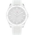 Ce bracelet de montre Tommy Hilfigerest fait de silicone et est attaché à la montre au moyen de Épingles à ressort. Le bracelet a une taille de 19 mm et se ferme au moyen d'un boucle. Le bracelet n'a pas de support droit, ce qui signifie que ce bracelet convient uniquement aux montres énumérées ci-dessous.