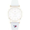Ce bracelet de montre Tommy Hilfigerest fait de silicone et est attaché à la montre au moyen de Épingles à ressort. Le bracelet a une taille de 16 mm et se ferme au moyen d'un boucle. Le bracelet est doté d'une monture droite, ce qui signifie qu'il convient à toutes les montres de la Tommy Hilfiger dotées d'une monture droite..
