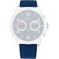 Ce bracelet de montre Tommy Hilfigerest fait de silicone et est attaché à la montre au moyen de Épingles à ressort. Le bracelet a une taille de 22 mm et se ferme au moyen d'un boucle. Le bracelet est doté d'une monture droite, ce qui signifie qu'il convient à toutes les montres de la Tommy Hilfiger dotées d'une monture droite..