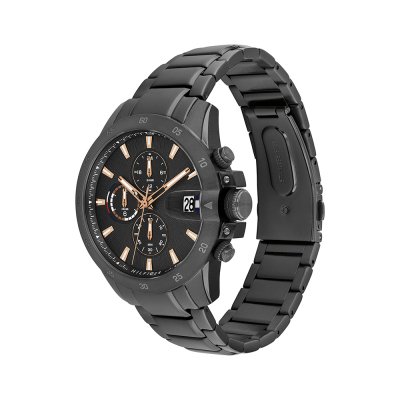 Cette montre Tommy Hilfiger a un boîtier Inox 43 mm en diamètre et est équipée d'un bracelet Inox. Le boîtier contient un mouvement Seiko Instruments Inc. et la montre est dotée d'un cristal Minéral..