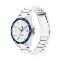 Cette montre Tommy Hilfiger a un boîtier Inox 43 mm en diamètre et est équipée d'un bracelet Inox. Le boîtier contient un mouvement Seiko Instruments Inc. et la montre est dotée d'un cristal Minéral..