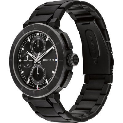 Cette montre Tommy Hilfiger a un boîtier Inox 44 mm en diamètre et est équipée d'un bracelet Inox. Le boîtier contient un mouvement Seiko Instruments Inc. et la montre est dotée d'un cristal Minéral..