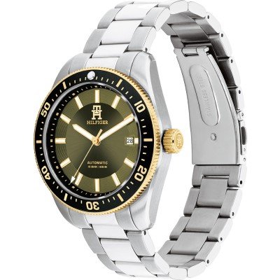 Cette montre Tommy Hilfiger a un boîtier Inox 40 mm en diamètre et est équipée d'un bracelet Inox. Le boîtier contient un mouvement Miyota et la montre est dotée d'un cristal Minéral..