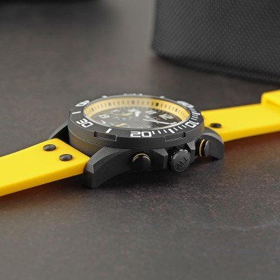 Cette montre TW Steel a un boîtier charbon 44 mm en diamètre et est équipée d'un bracelet caoutchouc. Le boîtier contient un mouvement Seiko Instruments Inc. et la montre est dotée d'un cristal Minéral durci..