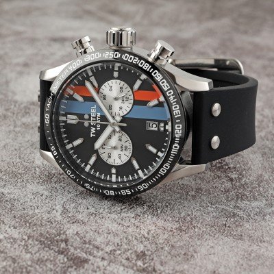 Cette montre TW Steel a un boîtier Inox 45 mm en diamètre et est équipée d'un bracelet caoutchouc. Le boîtier contient un mouvement Seiko Instruments Inc. et la montre est dotée d'un cristal Minéral durci..