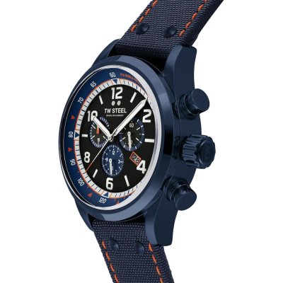 Cette montre TW Steel a un boîtier Inox 48 mm en diamètre et est équipée d'un bracelet Textile sur Cuir. Le boîtier contient un mouvement Ronda et la montre est dotée d'un cristal Saphir antireflet unique..