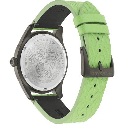 Cette montre Versace a un boîtier Inox 41 mm en diamètre et est équipée d'un bracelet cuir. Le boîtier contient un mouvement Ronda et la montre est dotée d'un cristal Saphire..