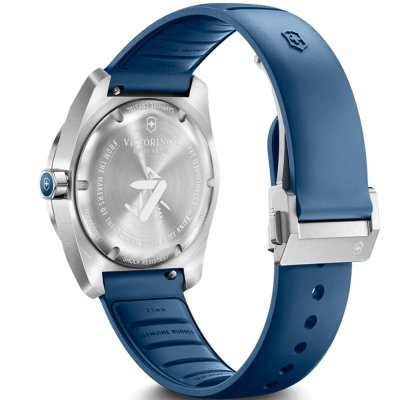 Cette montre Victorinox a un boîtier Inox 39 mm en diamètre et est équipée d'un bracelet caoutchouc. Le boîtier contient un mouvement Ronda et la montre est dotée d'un cristal Saphir antireflet unique..