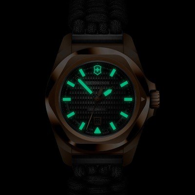 Cette montre Victorinox a un boîtier Inox 32 mm en diamètre et est équipée d'un bracelet Paracorde. Le boîtier contient un mouvement Sellita et la montre est dotée d'un cristal Saphir antireflet unique..