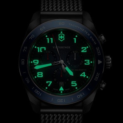 Cette montre Victorinox a un boîtier Inox 42 mm en diamètre et est équipée d'un bracelet Inox. Le boîtier contient un mouvement Ronda et la montre est dotée d'un cristal Saphir antireflet unique..