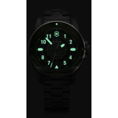 Cette montre Victorinox a un boîtier Inox 43 mm en diamètre et est équipée d'un bracelet Inox. Le boîtier contient un mouvement Sellita et la montre est dotée d'un cristal Saphire..