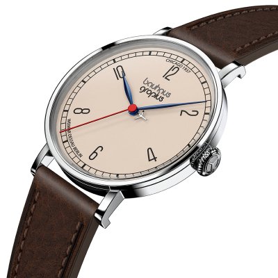 Cette montre Walter Gropius a un boîtier Inox 38 mm en diamètre et est équipée d'un bracelet cuir. Le boîtier contient un mouvement Miyota et la montre est dotée d'un cristal Saphire double antireflet..