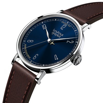 Cette montre Walter Gropius a un boîtier Inox 38 mm en diamètre et est équipée d'un bracelet cuir. Le boîtier contient un mouvement Miyota et la montre est dotée d'un cristal Saphire double antireflet..