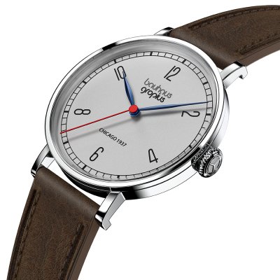 Cette montre Walter Gropius a un boîtier Inox 38 mm en diamètre et est équipée d'un bracelet cuir. Le boîtier contient un mouvement Miyota et la montre est dotée d'un cristal Saphire double antireflet..