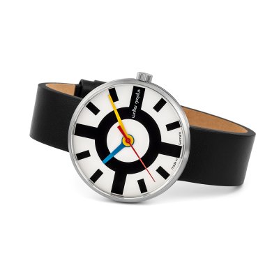 Cette montre Walter Gropius a un boîtier Inox 39 mm en diamètre et est équipée d'un bracelet cuir. Le boîtier contient un mouvement Miyota et la montre est dotée d'un cristal Saphire double antireflet..
