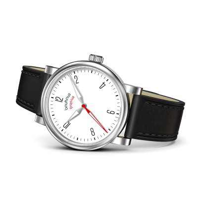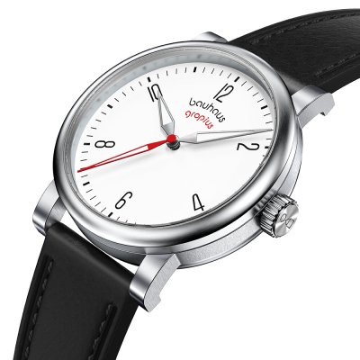 Cette montre Walter Gropius a un boîtier Inox 40 mm en diamètre et est équipée d'un bracelet cuir. Le boîtier contient un mouvement Seiko Instruments Inc. et la montre est dotée d'un cristal Saphire double antireflet..