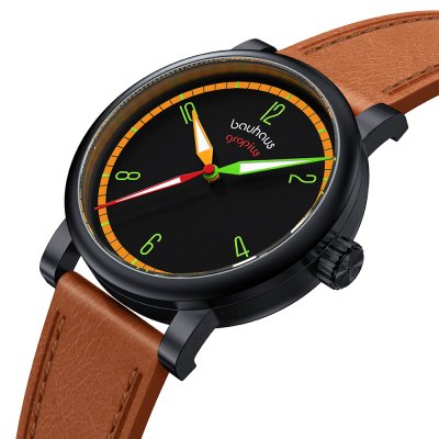 Cette montre Walter Gropius a un boîtier Inox 40 mm en diamètre et est équipée d'un bracelet cuir. Le boîtier contient un mouvement Seiko Instruments Inc. et la montre est dotée d'un cristal Saphire double antireflet..